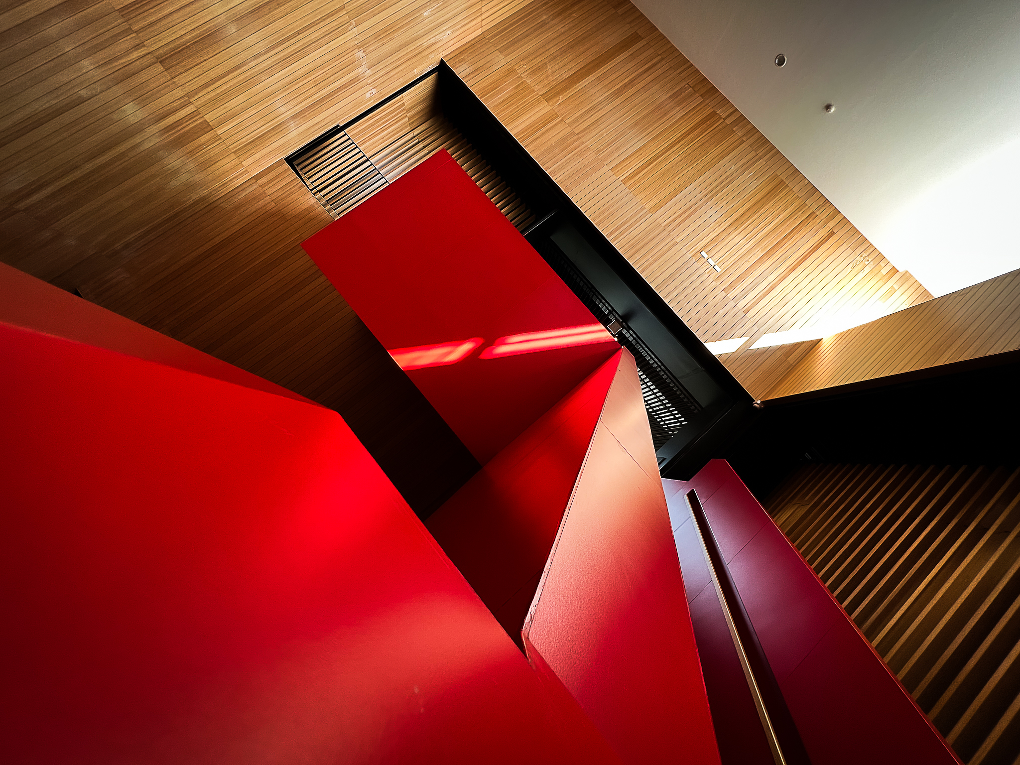日期:2024/11/6 時間:中午 地點:台南新總圖 使用器材: iphone13Pro 內容:走進圖書館晨讀後,中午銳利的陽光照射下,走在旋轉樓梯觀察光影的變化,而啟發了我對未來之門的想像與創作。
