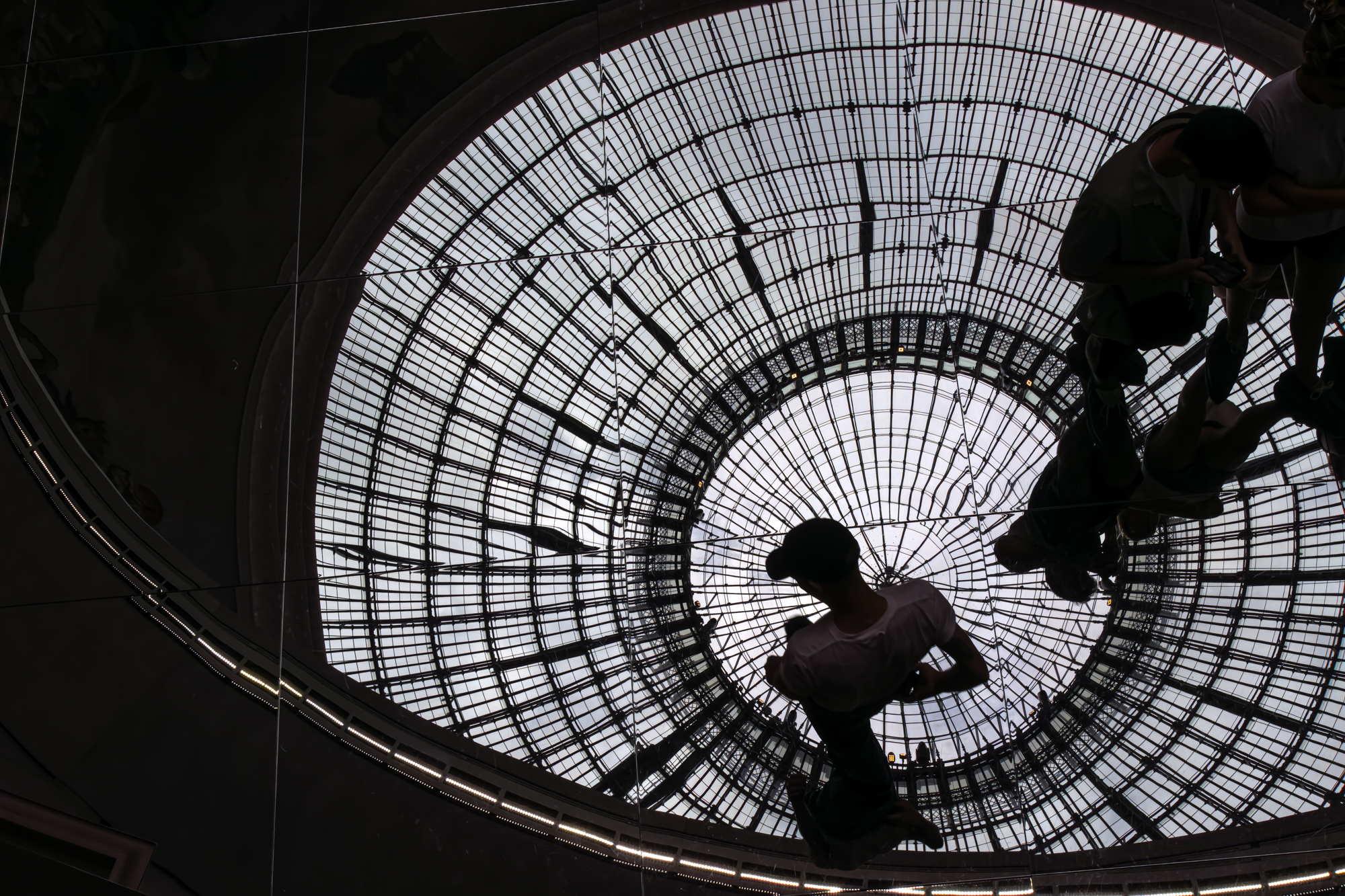 Built in the 18th century, Bourse de commerce, a circular building with an open-air interior court was used to trade wheat and other commodities. In 1854, the building was converted into the Paris stock exchange. The rotonda and dome were added which resembled the French and Roman Pantheons. The building was restored by architect Tadao Ando and has been the exhibition site of the Pinault Collection since 2021. The Bourse de Commerce in Paris features a stunning double helix staircase designed in the 18th century. This staircase, designed by Nicolas Le Camus de Mézières between 1763-1767, was built in the Corn Exchange building to facilitate the movement of porters carrying heavy sacks of corn. “WAITING”, the sculpture by Yuan and Yu, is a 164 cm high menacing model of an eagle observing from above. The sculpture is made of fiberglass, silicon and feathers. “TURISTI” by Maurizio Cattelan. The very real looking pigeons rest on the balustrade of the rotunda.