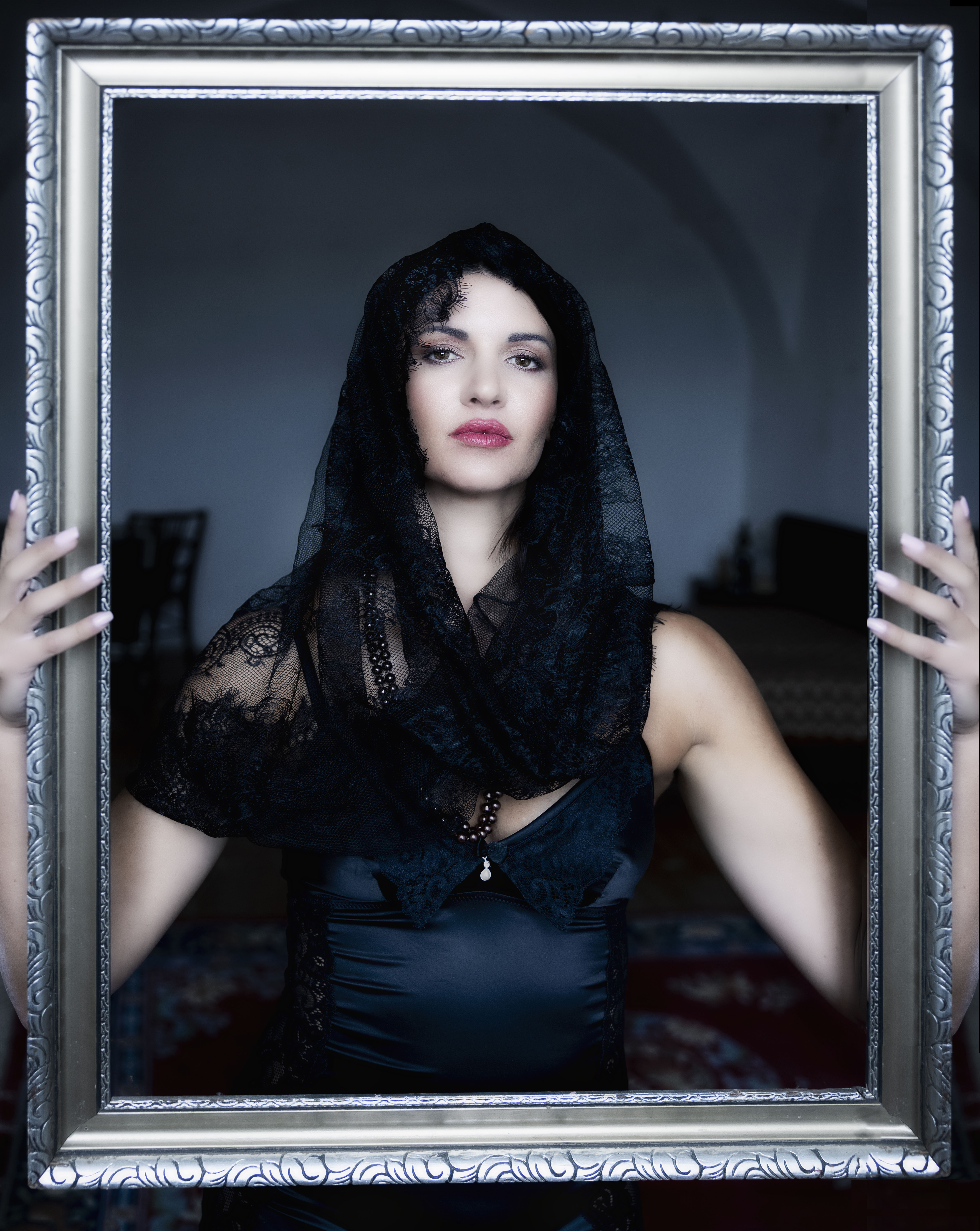 Sicilian Widow A veiled woman framed within a frame — Sicilian Widow explores beauty, grief, and identity. Echoing classical portraiture, the image captures the tension between devotion and defiance, presence and memory.