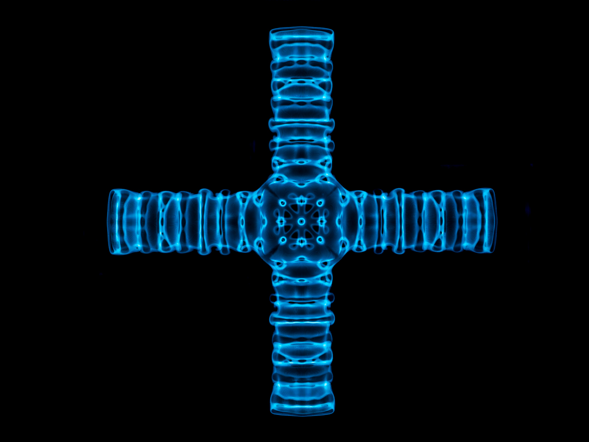 Part of my broader Resonance project, the work presented here explores how vibrations give shape to water, when placed in a container with cross shape. The results are mesmerising and prompt the question that underlines the whole project: do vibrations play a role in shaping the Universe? Perhaps...