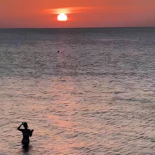 Maroubra Beach, Sydney. In the middle ground, two boys mirror each other, hands on hips, measuring the swell. It’s the almost‑heroic pose children strike before doing something that feels big. Around them, others float and duck under, but the pair hold the breath before action. Shot on black‑and‑white film, the grain reduces the scene to gesture and resolve: courage as rehearsal, play as training. The next wave is coming; the decision—to go—will make them a little older.