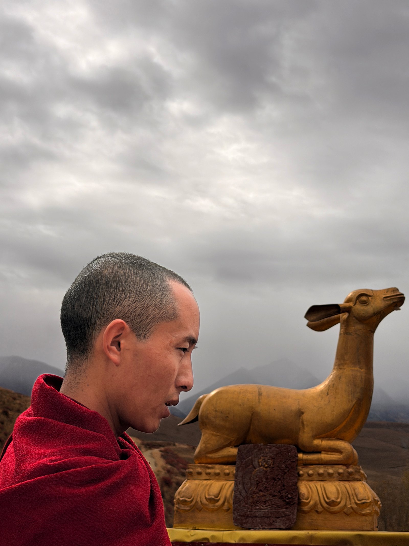 During my journey in Tibet, I encountered this red-robed monk and felt a sense of familiarity. Perhaps we knew each other in a past life and were reunited in this one.